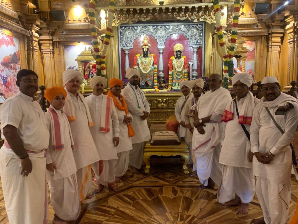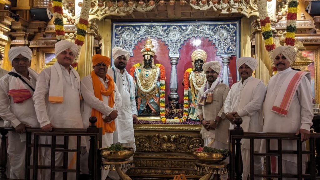 ✨ संत तुकाराम महाराजांच्या पादुका त्यांच्या वंशज श्री पुंडलिक महाराज देहूकर यांच्या हस्ते अर्पण व स्थापित करण्यात आल्या आहेत.