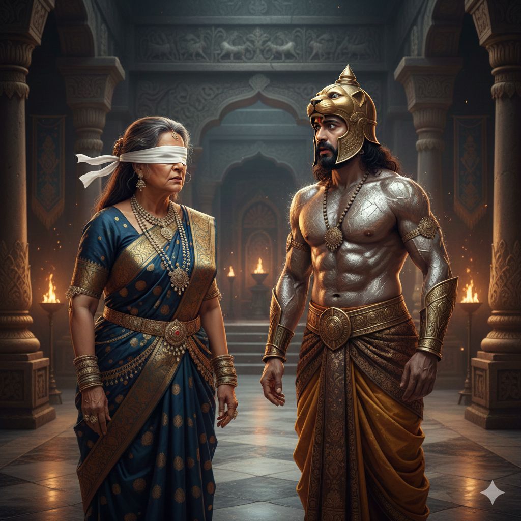 युधिष्ठिराच्या सल्ल्यानुसार गांधारीच्या दृष्टीत अपार शक्ती असल्याने, तिची दृष्टी संपूर्ण शरीरावर पडल्यास दुर्योधन अभेद्य होऊ शकतो, असा समज निर्माण होतो. त्यानुसार दुर्योधन गांधारीकडे जातो. मात्र, या संपूर्ण घडामोडींवर भगवान श्रीकृष्णांची नजर असते.